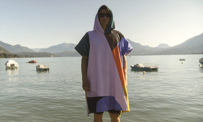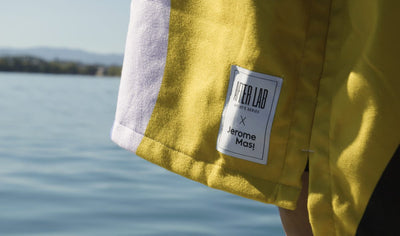 For his collaboration Poncho, Jérôme explored abstract yet highly distinctive color blocking, bringing a true urban vibe to the beach poncho.
