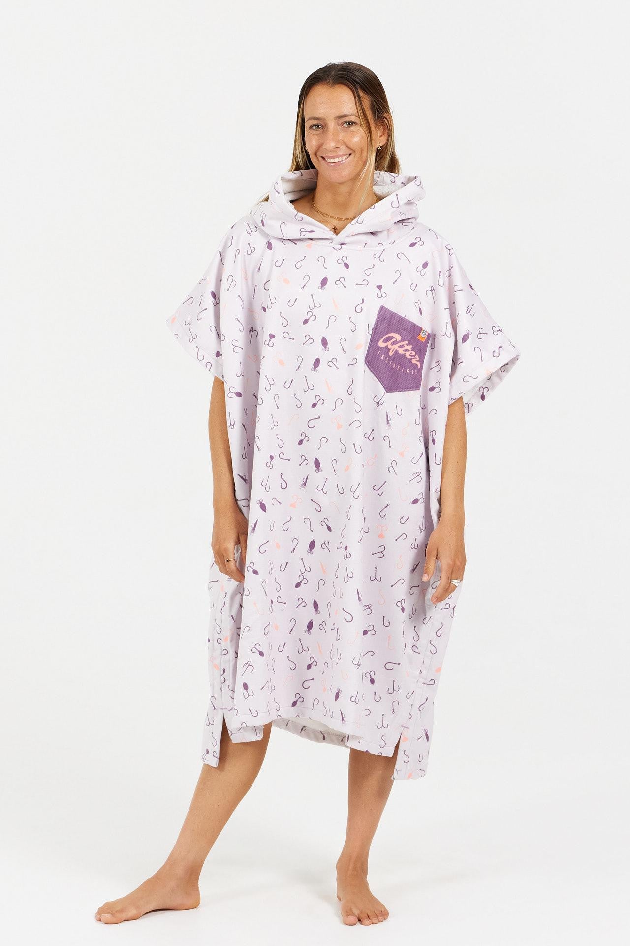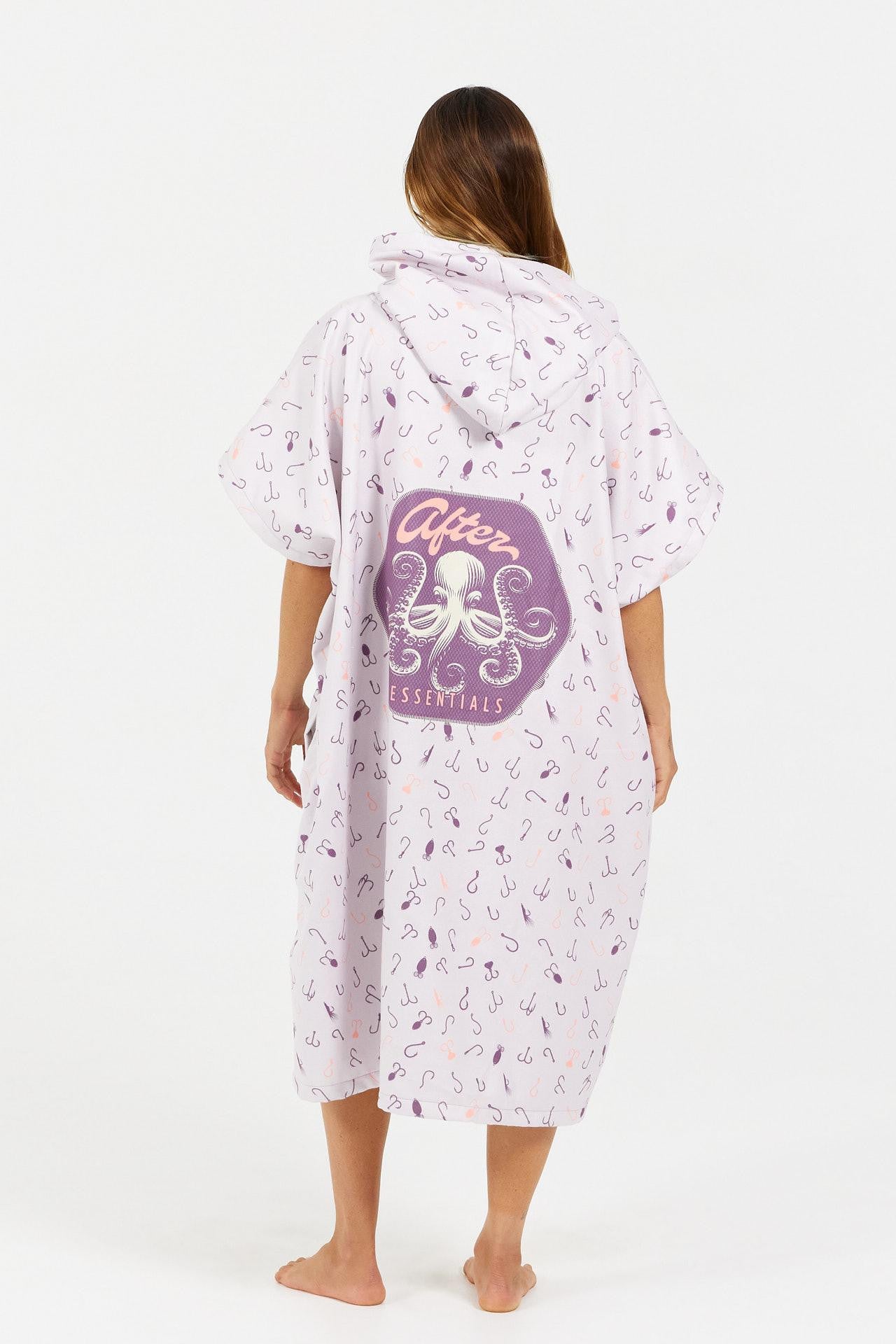 Cada poncho de esta serie luce un estampado all over único (redes de pesca, cebos, cuadros) que realza un artwork dorsal de criatura marina. Entre detalles gráficos y el espíritu vintage de las marinas americanas, estos diseños muestran un espíritu a la vez auténtico y original.